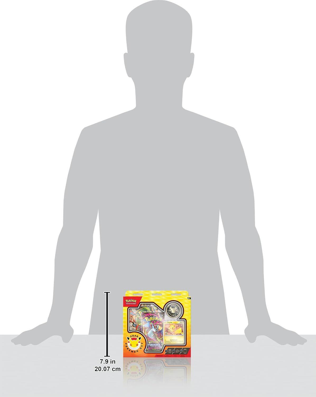 - Per festeggiare l’evento, questa collezione include un’esclusiva carta promozionale olografica di Pikachu e una moneta con il logo del trentesimo anniversario.