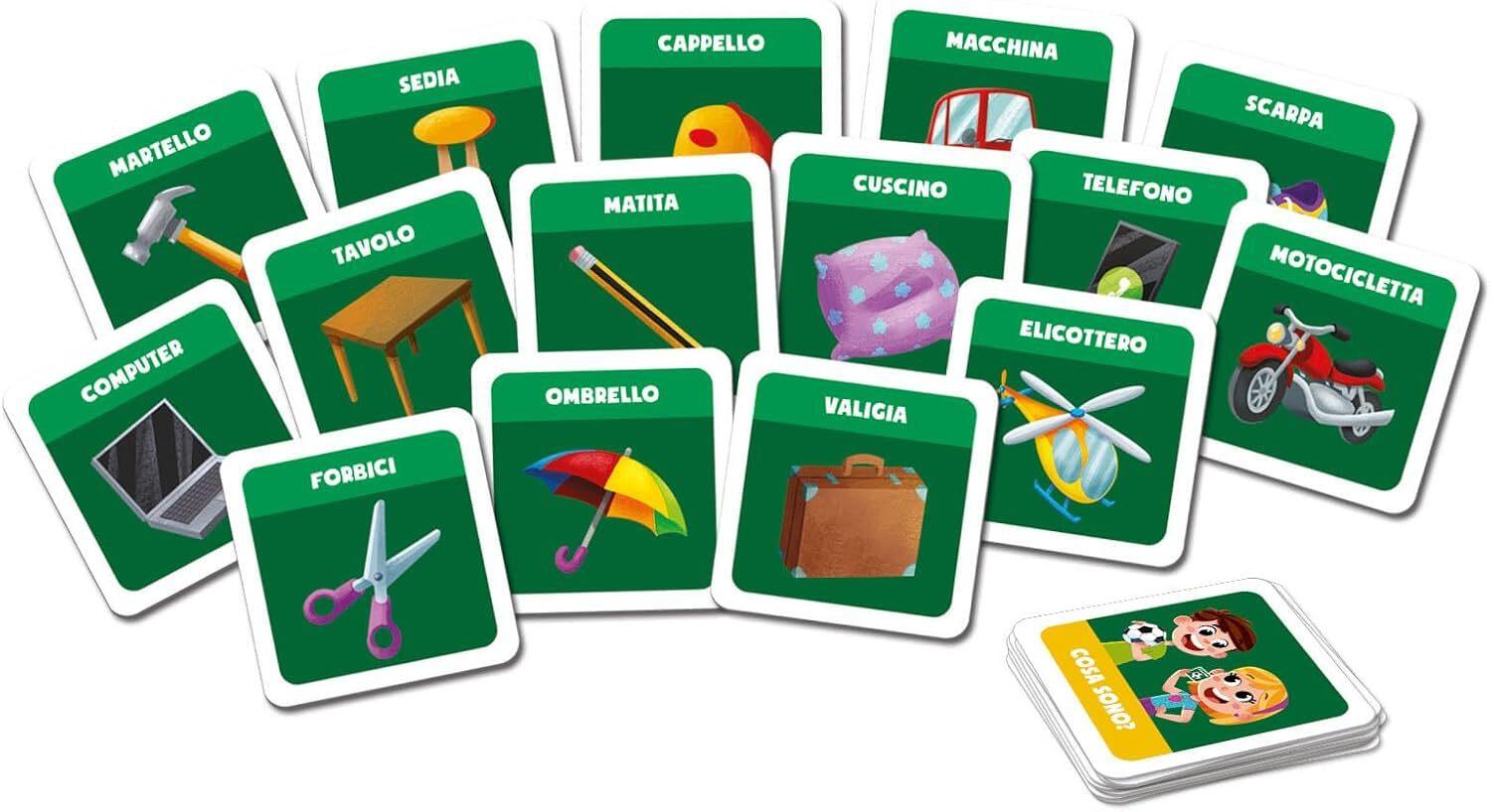 - GIOCO DA TAVOLO: gioca in compagnia a "Cosa Sono?", un gioco per bambini e tutta la famiglia, in cui bisogna indovinare l’immagine raffigurata sulla carta con domande semplici e intelligenti