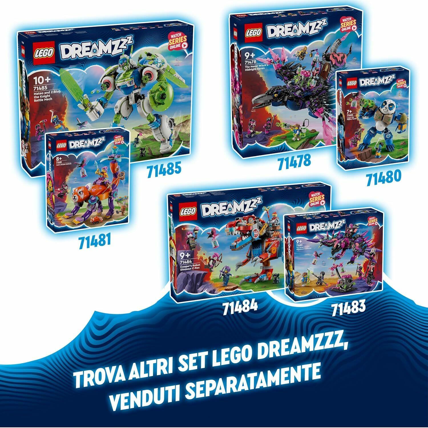 Set LEGO DREAMZzz: esplora altri giocattoli fantasy (disponibili separatamente) per i bambini e le bambine della gamma LEGO DREAMZzz, con cui immergersi nelle avventure del Mondo dei Sogni e conoscere gli eroici personaggi