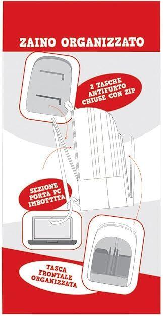 - COMODO: Il retro e il fondo sono termoformati e, uniti agli spallacci regolabili imbottiti con parte posteriore in rete, rendono questo zaino molto pratico e comodo