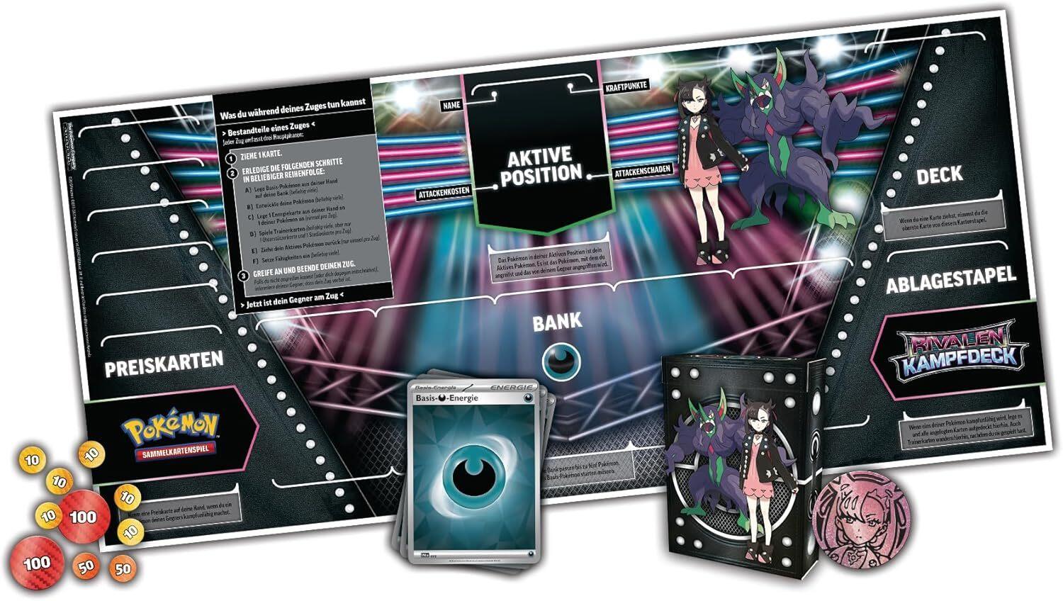 - Riceverai 1 mazzo immediatamente giocabile con 60 carte, 1 set di segni di danno, 1 moneta grande, 1 deckbox, 1 tappetino da gioco double face con istruzioni di strategia e 1 scheda codice per giocare online con questo mazzo.