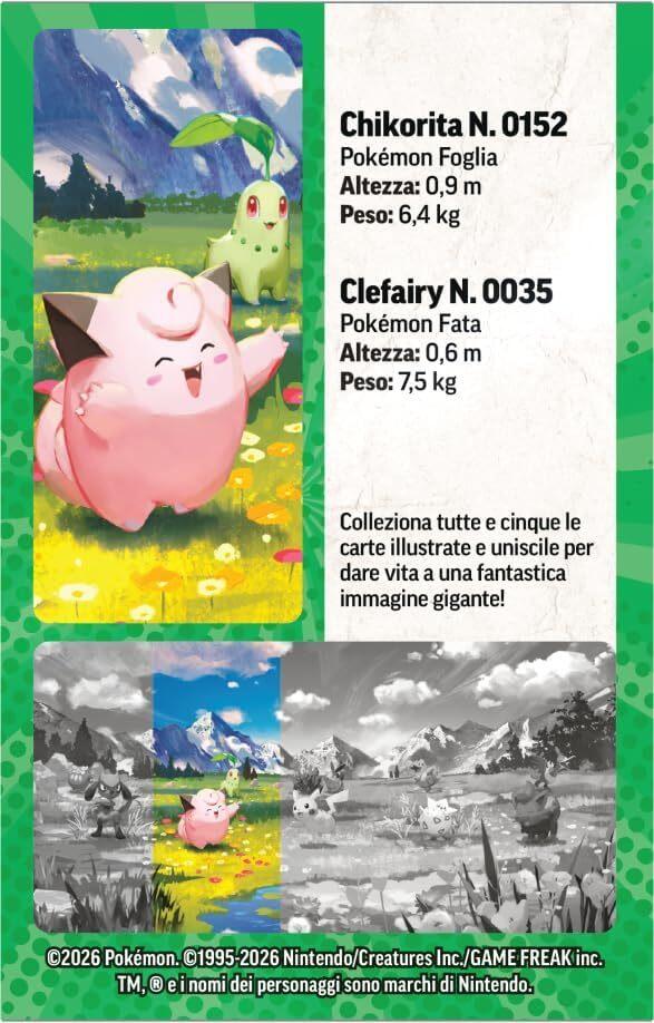 - All’interno troverai inoltre un foglio di adesivi e una carta con l’illustrazione Pokémon esclusiva della miniscatola: puoi collezionarle tutte e cinque per completare l’immagine!