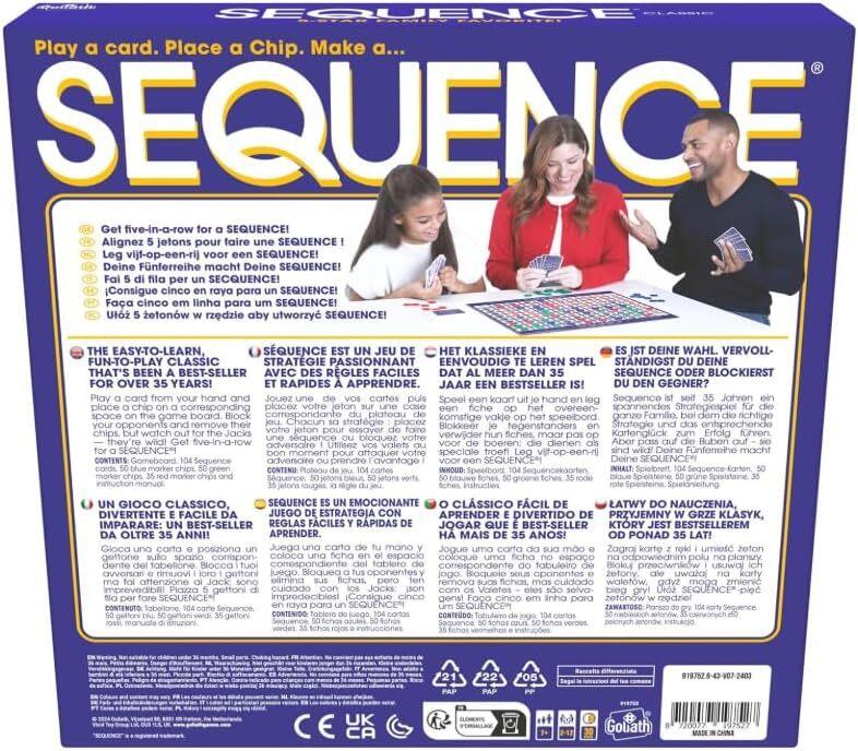 - GIOCO DI STRATEGIA E DIVERTIMENTO PER TUTTA LA FAMIGLIA – Sequence Original è un classico gioco da tavolo in cui carte e strategia si combinano per creare partite avvincenti. Perfetto per serate in famiglia o con gli amici, stimola riflessione, logica e tattica.
